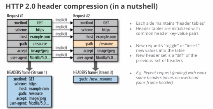 HTTP/2에서는 Static/Dynamic Hash Table 개념으로 중복을 검출해서 처리